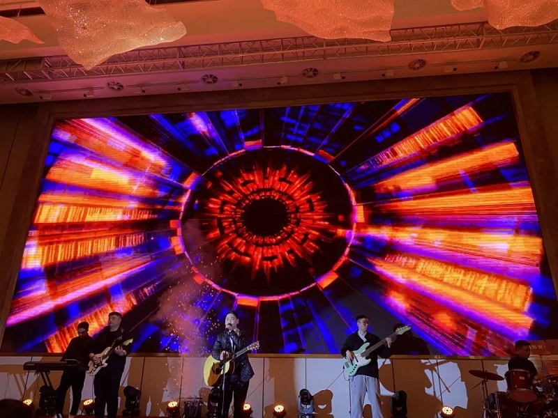 團拜會由開山聯(lián)合公司徐濤主唱的開場秀拉開帷幕,絢麗的舞臺背景和熾烈的鼓樂聲讓現(xiàn)場充滿了歡樂祥和的喜慶氣氛。