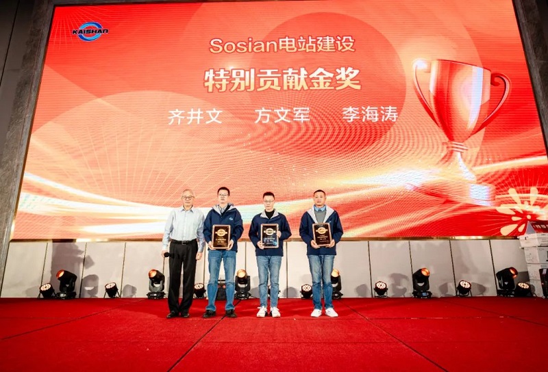 團拜會上,控股集團公司頒發(fā)了2024年度特別貢獻獎,表彰在過去一年為公司轉(zhuǎn)型升級和持續(xù)發(fā)展做出突出貢獻的團隊成員。SMGP電廠建設(shè)團隊、Sosian電站建設(shè)團隊、841/844大型無油螺桿主機工藝攻關(guān)團隊榮獲年度特別貢獻獎??偨?jīng)理湯炎博士向獲獎團隊成員頒發(fā)了金質(zhì)和銀質(zhì)獎牌。