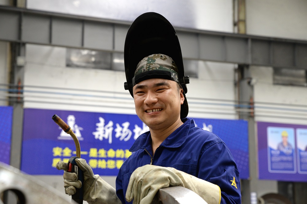 2002年,年僅18歲的姜梅進入恒堅壓力容器公司,被安排在工業(yè)機班組從事埋弧焊工作,這個工作的難度在于焊接角度怎么調(diào)整,電流電壓與焊接速度的匹配。當時帶他的師傅,是有著豐富經(jīng)驗的焊接老技師汪金生。汪師傅對人要求嚴格,對焊接工藝要求很高,小姜每次操作稍有不當,都會被汪師傅認真指出。汪師傅經(jīng)常教導(dǎo)他:要成為一名優(yōu)秀的埋弧焊接師傅不僅要吃得起苦,受得起累,還要在日常工作中善于觀察,善于尋找新的方法。