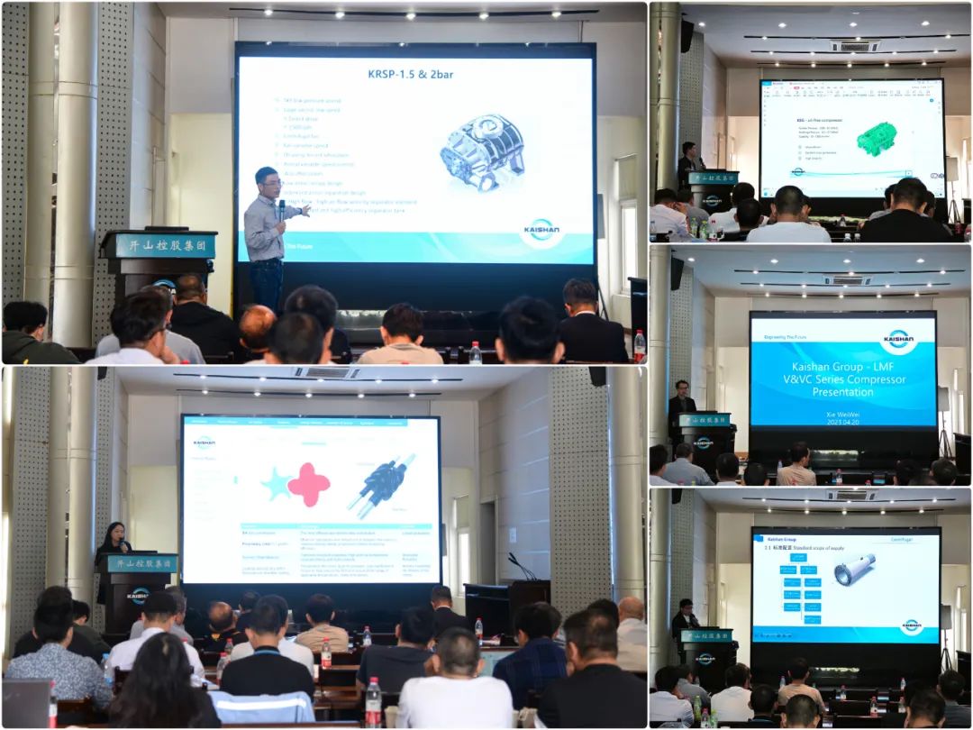 培訓(xùn)中,開山海外事業(yè)部產(chǎn)品市場經(jīng)理徐寧做了全譜系開山螺桿壓縮機(jī)產(chǎn)品介紹;開山無油壓縮機(jī)產(chǎn)品經(jīng)理王子珍、開山離心壓縮機(jī)技術(shù)主管歐志奇、高壓往復(fù)壓縮機(jī)研究所所長謝偉偉、開山工藝(氣體)壓縮機(jī)經(jīng)理倪健、開山壓縮機(jī)公司技術(shù)部經(jīng)理黃劍等分別就各自負(fù)責(zé)的產(chǎn)品給代理商們做了技術(shù)匯報(bào)。值得一提的是,工程技術(shù)人員擁有雙語能力做流利演講和答疑的能力,顯示開山已經(jīng)做好了開拓海外市場的人力資源準(zhǔn)備。